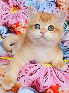 Willi’s short, dense fur and irresistibly round face are perfect examples of the timeless elegance found in British Shorthair kittens. His big, expressive eyes are full of love and curiosity, making it impossible not to fall in love with him.