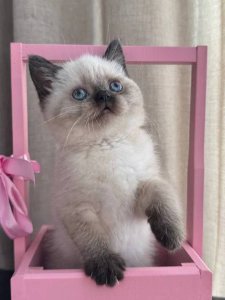 Even at just a few months old, Winna already embodies the signature traits of the Scottish Straight breed—her adorable straight ears, round face, and irresistibly cuddly nature make her a perfect feline companion. Whether she’s chasing a toy or curling up beside you for snuggles, Winna will bring warmth and joy to your home.