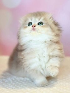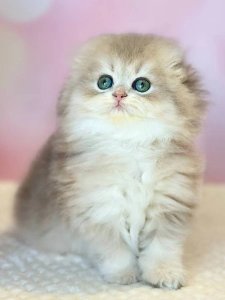 At just a few months old, Xanti already showcases the hallmark features of the Highland Fold kittens—her signature folded ears, big round eyes, and luxuriously fluffy coat make her irresistibly cute. Her playful and loving personality ensures she’s always ready for fun and snuggles.