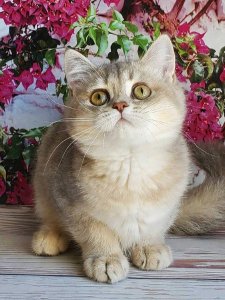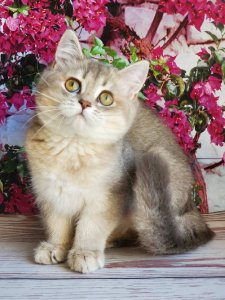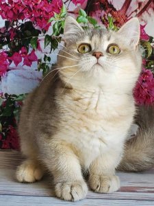 Even at just a few months old, Xeniya displays all the signature traits of the British Shorthair kittens—a short, dense coat, adorably chubby cheeks, and large, expressive eyes that will melt your heart.