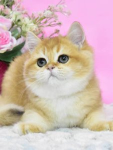 Yasha’s short, plush coat and round face with chubby cheeks highlight the iconic features of British Shorthair kittens. His large, expressive eyes sparkle with affection and curiosity, perfectly capturing the endearing essence of his breed. Even at just a few months old, Yasha exudes the classic charm that makes British Shorthairs so beloved.