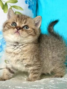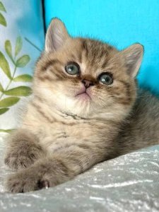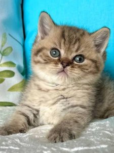 Yuki’s straight ears, perfectly round face, and bright, expressive eyes beautifully showcase the unique appeal of Scottish Straight kittens. Even at just a few months old, he displays all the hallmark traits of his breed, blending sweetness with a lively curiosity.