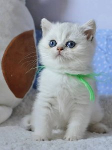 Zelya’s short, plush blue coat, round face with chubby cheeks, and large, expressive eyes make him a picture-perfect example of British Shorthair kittens. At just a few months old, he already embodies the hallmark features of his breed, offering both beauty and a sweet, gentle personality.